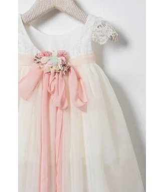 Βαπτιστικό πανέμορφο φορεματάκι με διακοσμητικά λουλουδάκια στο μπούστο και μπαντάνα από την bambolino . Απλά εντυπωσιάστε !!! code :Ballou 8550