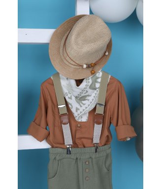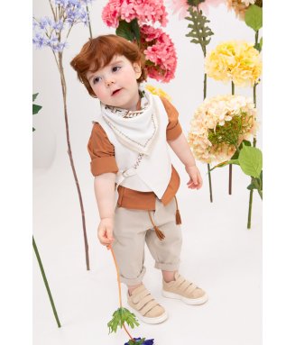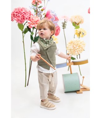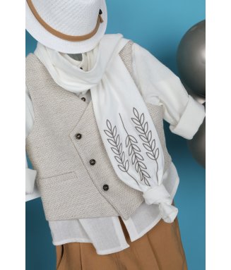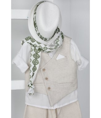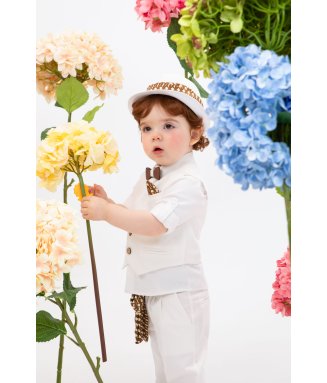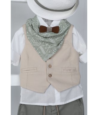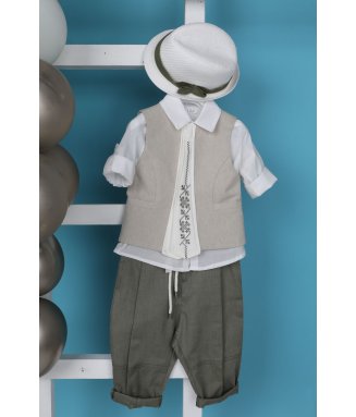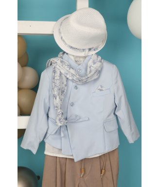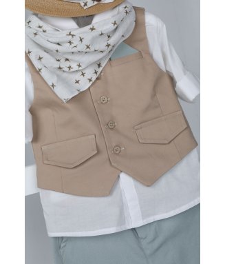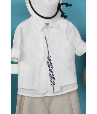 Antonakis-9406: Ο Antonakis είναι ένα classicbutmodern βαπτιστικό κοστούμι. Αποτελείται από μπεζ παντελόνι εξαιρετικής ποιότητας, μπλε γιλέκο ενώ την διαφορά στο σετ κάνει το λευκό πουκάμισο με σχέδιο. Το κοστούμι ολοκληρώνεται με το παπιγιόν, την μπλε ζώνη και το μπλε καβούρι
